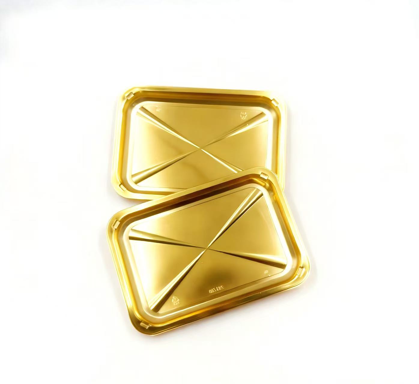 Vi introducerar sinnebilden av sofistikering och praktisk användning för dina finaste kulinariska erbjudanden. Våra guld- och silverbrickor med PET-lock är noggrant utformade för att visa upp dina premiumprodukter – från hantverkscharkuterier och lagrade ostar till saftiga köttbitar och färska skaldjur – med oöverträffad elegans.